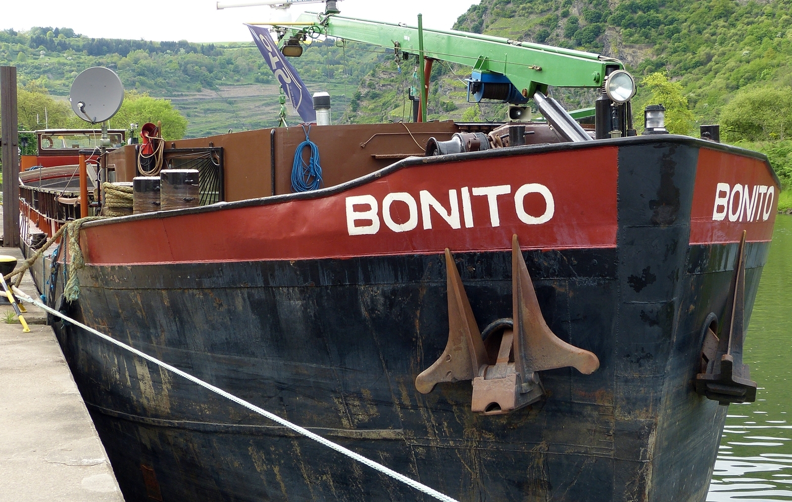 GMS Bonvent – Eni: 02204518 – Ex Namen: Stad Delfzijl ,, Vlieland, Speranza (2204518), Hildegard Krebs – L: 70 m – B: 7.20 m – Tg: 2.89 m – Ton: 1011 t – PS: 860/Mitsubishi – Bugstrahl: 320 PS DAF – Bj: 1962 bei Bijholt in Foxhol/NL