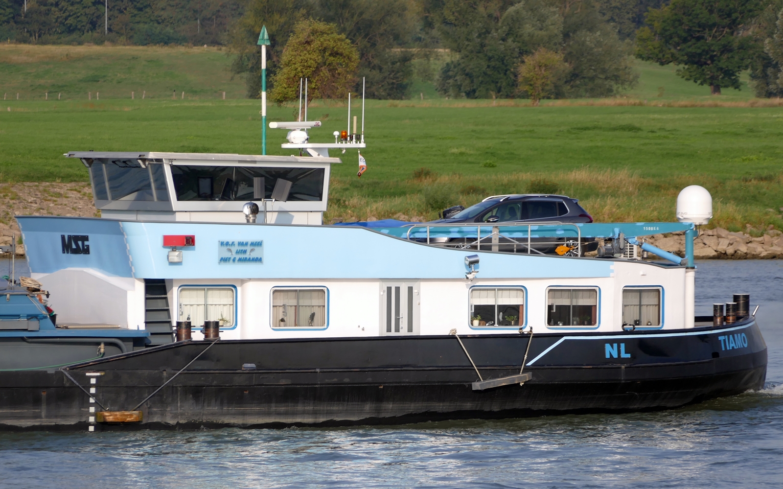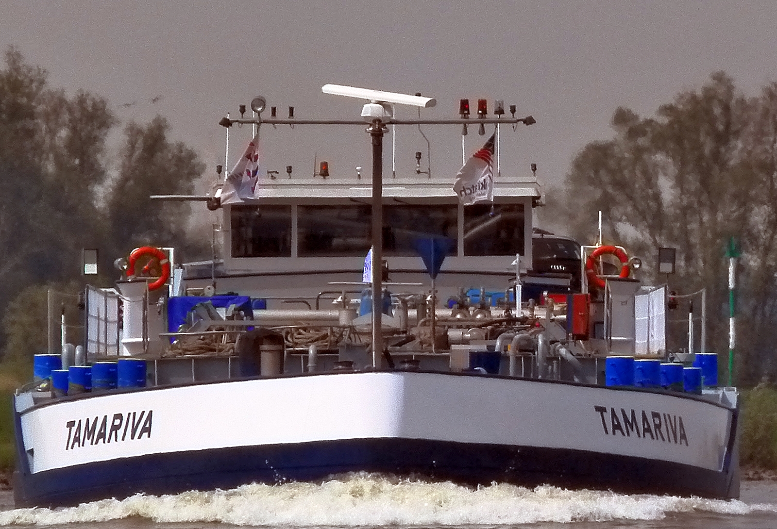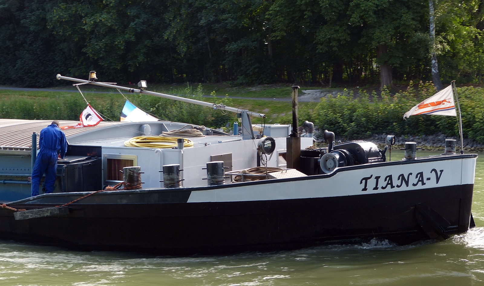 SGMS Tiariba – Ravenswaaij/NL – Eni: 02322718 – x Namen: Clarissa, Bernisse – L: 95 m – B: 9.50 m – Tg: 2.66 m – Ton: 1634 t – PS: 1190/Caterpillar – Bugstrahl: 220 PS DAF – Bj: 1962 bei DIW in Berlin/D