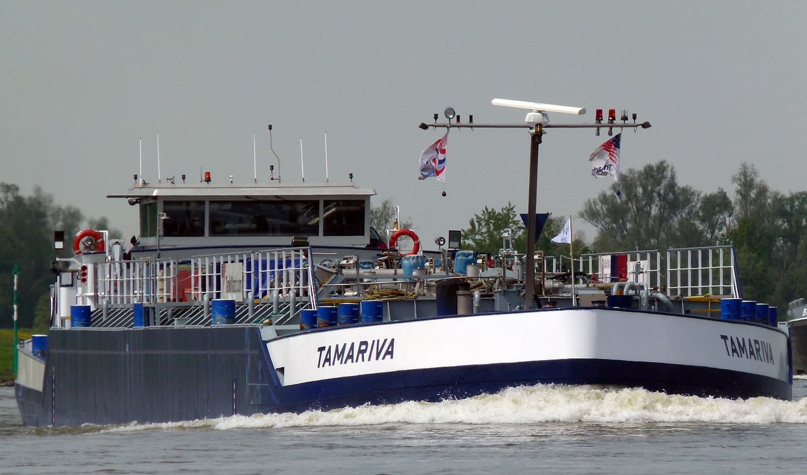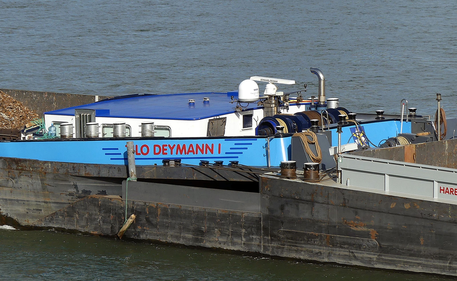 SGMS Tilo Deymann 1 SGMS – Haren/Ems/D – Eni: 02322008 – Rx Namen: Gerda 2, Camaro 7, Challenger, Anastasia – L: 110 m – B: 11.45 m – Tg: 3.40 m – Ton: 2813 t – PS: 2 x 1835/Caterpillar – Bugstrahl: 810 PS Caterpillar Verhaar-Omega-Jet – Bj: 1995 bei Sanzierul Naval Oltenita/ROM – Fertigstellung: Breko in Papendrecht/NL