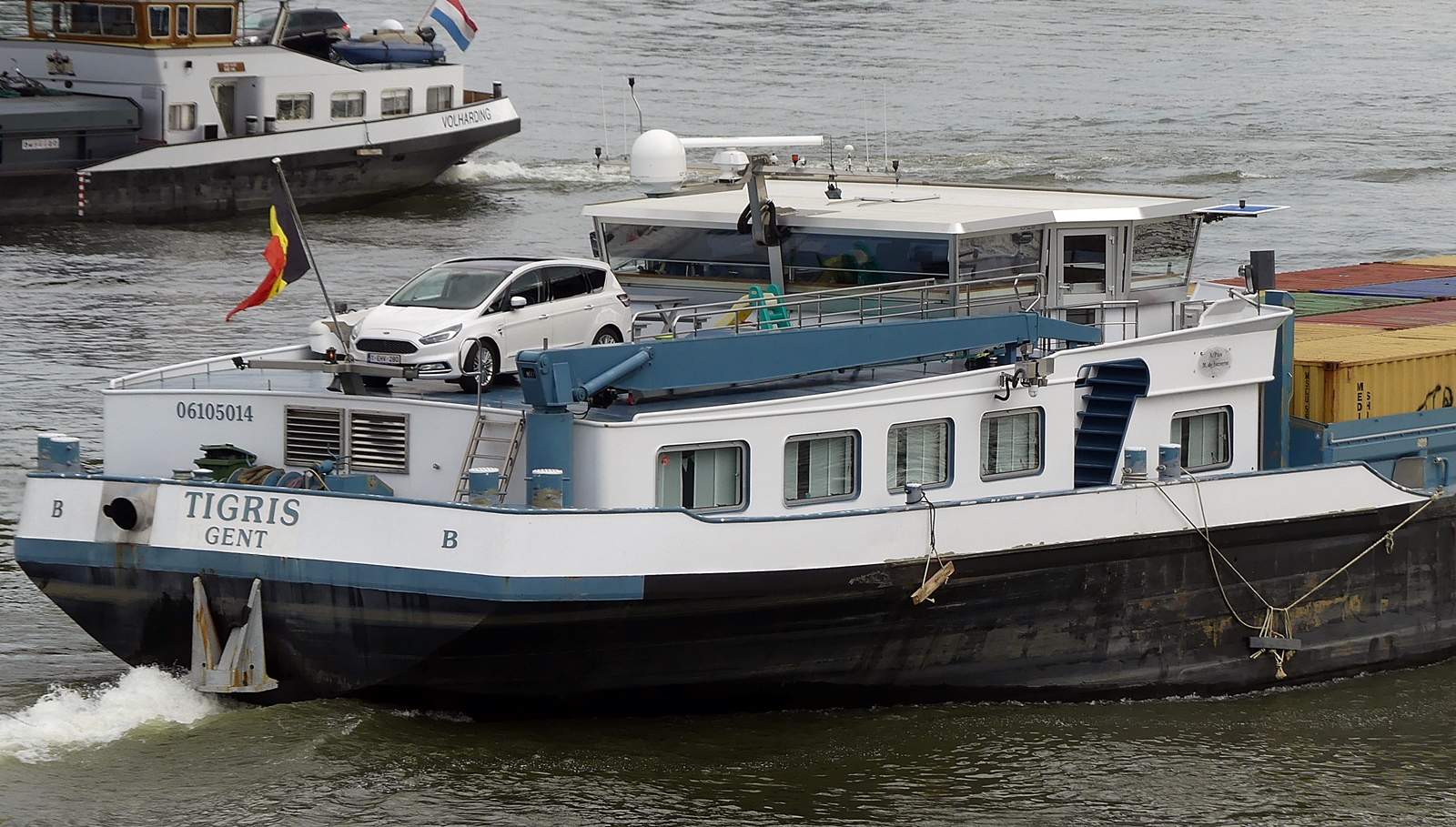 SGMS Taz – Brügge/B – Eni: 02324719 – Ex Namen: Eternity, Schelde Express – L: 110.25 m – B: 12.54 m – Tg: 4 m – Ton: 3948 t – PS: 2 x 1520/Caterpillar – Bugstrahl: 450 PS Scania – Bj: 2000 bei St.Barbara in Eisden/B – Fertigstellung: Smits in Krimpen a/d IJssel/NL