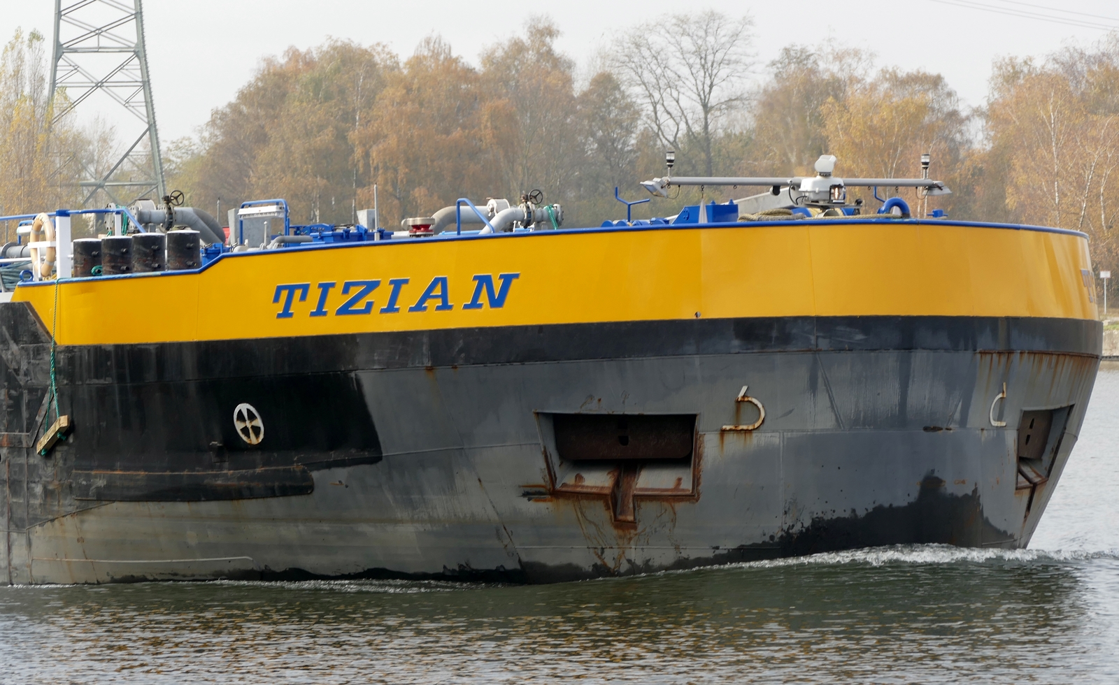 TMS Tizian – Marktheidenfeld/D – Eni: 04811830 – L: 109.93 m – B: 11.45 m – Tg: 3.30 m – Ton: 2846 t – PS: 2 x 750/Caterpillar – Bugstrahl: 450 Verhaar Omega-Jet E-Motor – Bj: 2014 bei GS Yard B.V. in Waterhuizen/NL
